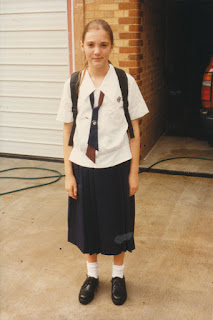I must have gone on some crash diet, because this is me a year later heading out the gate for highschool. My 13 year old self is unfortunately more clued onto the real world. Where else my 5 year old self was super excited for kindy and my 6 year old self was still super excited for primary school, my 13 year old self new better!